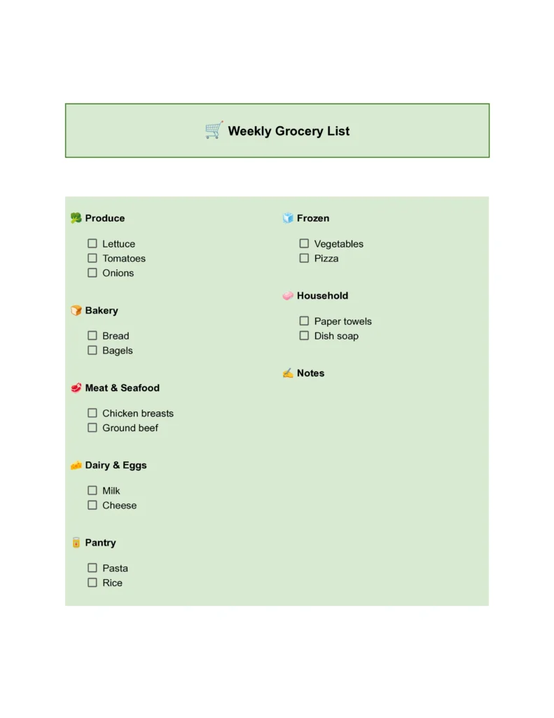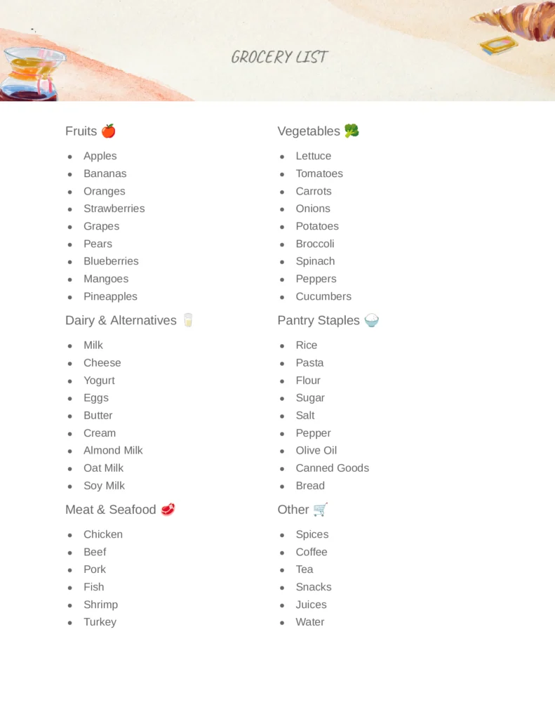 Stay organized with printable and editable grocery list templates. Plan your weekly shopping and never forget an item again.