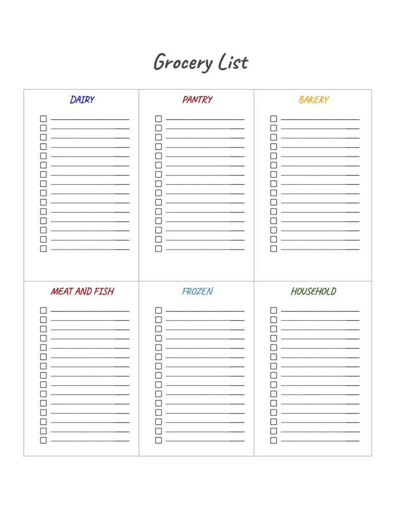 Yes, some templates include sections for produce, dairy, meats, and pantry items to simplify shopping.