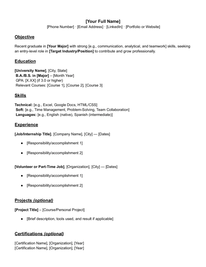 Yes, most resume templates include all standard sections, and you can add or remove any of them depending on your background.